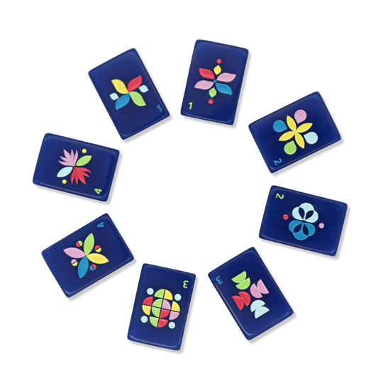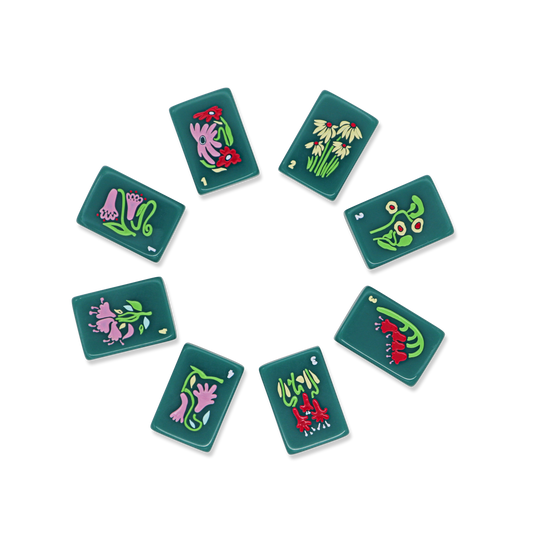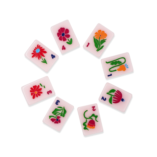 With numbered flowers, our tiles can be used for American or Chinese play. Singaporean and Riichi tiles are in the works.