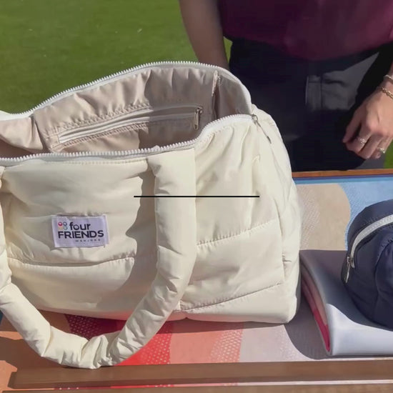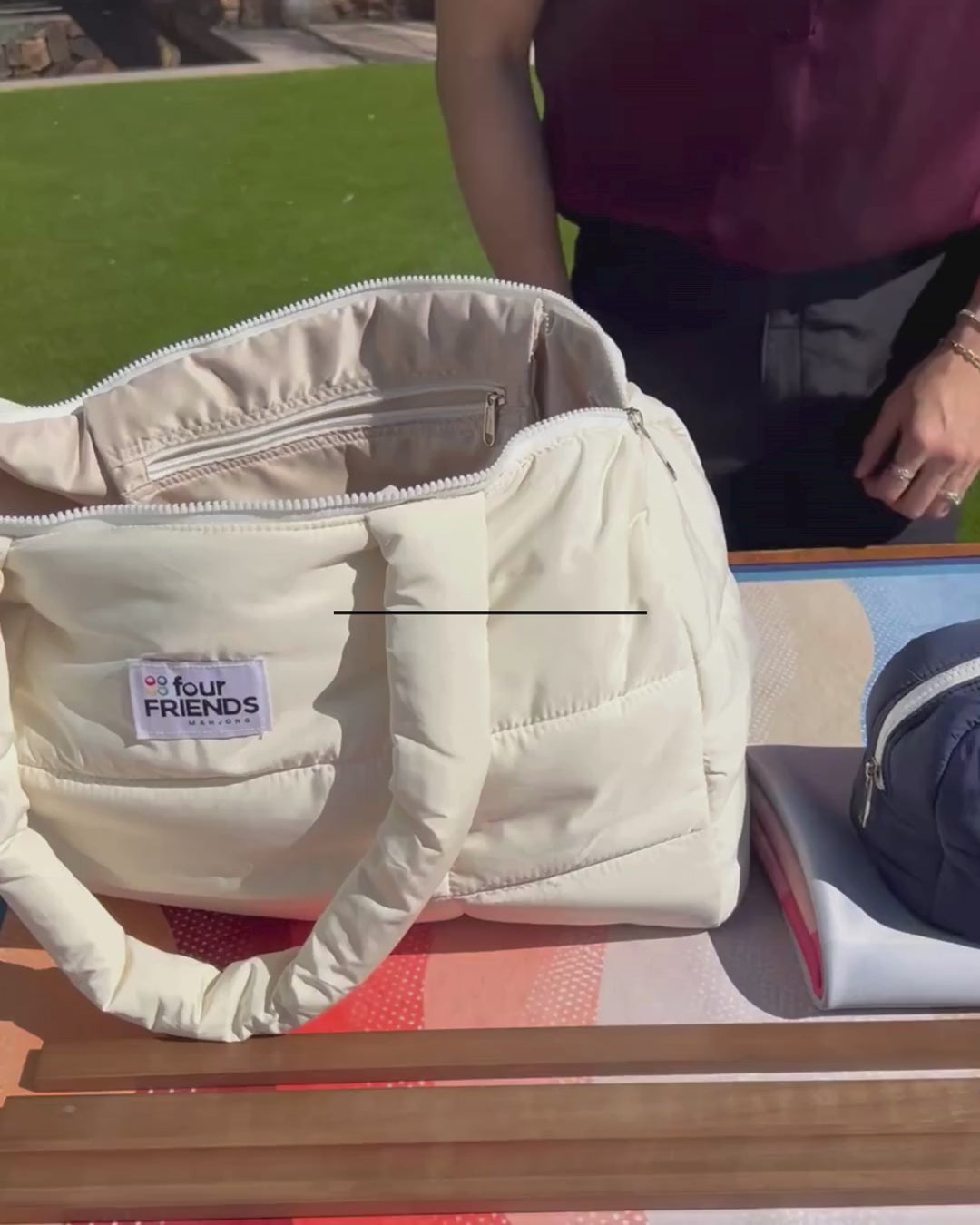 After several prototypes, we created the tote we always wanted: a chic, luxurious puffer bag designed to protect, store, and transport your Mahjong essentials with ease.