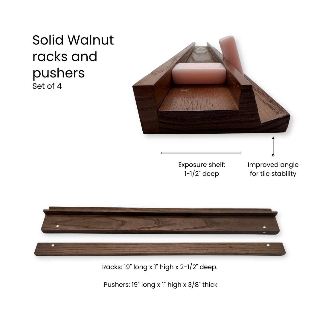 Upgrade your table with our walnut racks and pushers, a thoughtful alternative to traditional plastic sets. Crafted from solid walnut, they showcase the natural warmth and grain of the wood, with a clean, timeless profile that complements any setup.